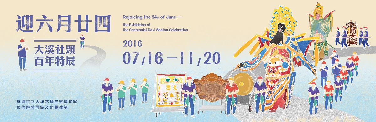 農曆六月廿四日的關聖帝君聖誕慶典,在大溪被稱為「六月廿四」,對大溪人而言比過年還重要。盛大的遶境活動由一群義務參與的「社頭」支持,自大正6年(1917)同人社製作了第一頂普濟堂關聖帝君神轎開始,近百年來,慶典遶境與社頭已密不可分,也形成大溪獨特的民間信仰與地方社會結構關係。2016年適逢大溪社頭參與關聖帝君祝壽遶境一百週年,桃園市立大溪木藝生態博物館搭配大溪文藝季,特別推出「迎六月廿四-大溪社頭百年特展」,藉由各社頭典藏遶境道具、照片、文獻史料、影音多媒體等展示文物,以大溪社頭參與「六月廿四」前、中、後為軸線,依序介紹大溪社頭的起源與發展歷程,認識社頭與慶典之關係及遶境模式的變化,從大溪社頭的發展故事,看到大溪人如何為「聖帝公」慶生,協作、敬天謝神的精神,充分展現大溪的百年文化傳統特色。